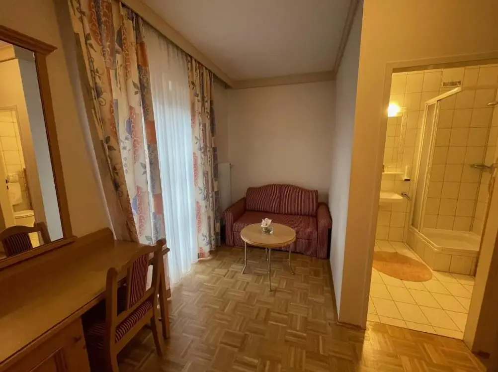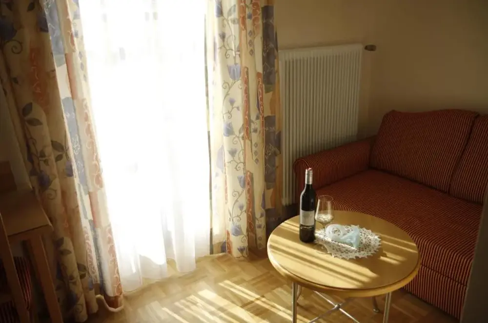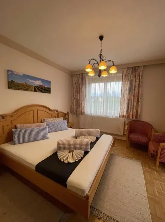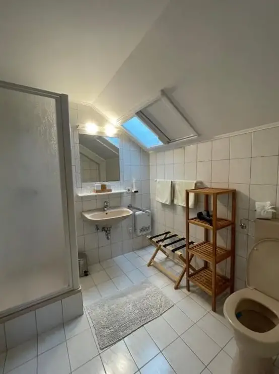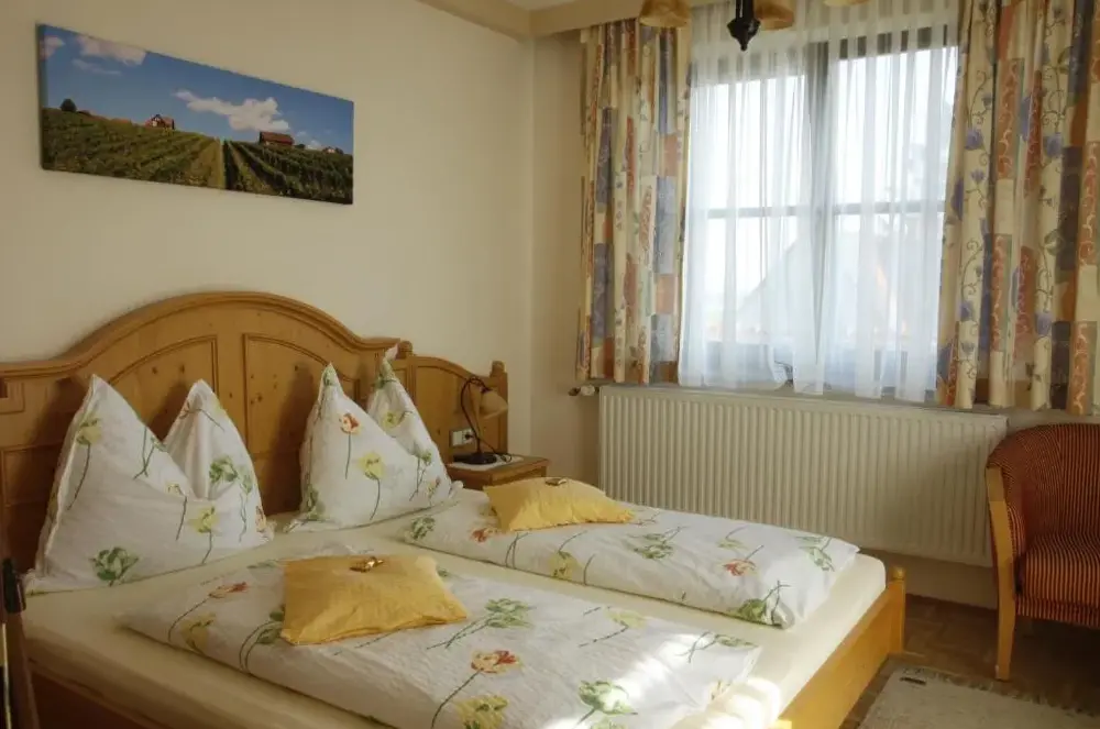 Very nice, friendly staff. Clean room, comfortable bed, TV. Everything you need. Bathroom large and clean. Balcony with great view. Buschenschank, food and wines (non -alcoholic drinks) Large selection, beautifully prepared, very tasty, wines particularly recommended